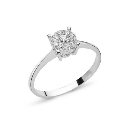 Klassisk og tidløs diamantring i 14 karat hvidguld fra NURAN’s elegante CORONET smykkeserie. Ringen er skabt i et smukt rosetdesign, hvor i alt 9 funklende brillanter er fattet med stor præcision. Den større centerbrillant er omgivet af 8 mindre brillanter, som tilsammen skaber et harmonisk og eksklusivt udtryk. Alle diamanter er i kvaliteten Wesselton/SI, hvilket giver ringen et klart, hvidt skær og et smukt spil i lyset.CORONET-ringen er et oplagt valg til dig, der ønsker en klassisk diamantring med et feminint og sofistikeret udtryk. Det cirkulære design giver ringen balance og elegance, samtidigmed at den større centersten får lov til at stå smukt frem. Ringen kan bæres alene som et elegant statement eller kombineres med andre smykker fra CORONET-serien for et gennemført og eksklusivt look.Ringen fås i flere diamantstørrelser fra 0,11 ct. til 0,37 ct., så du har mulighed for atvælge netop den størrelse, der passer bedst til din stil og dit budget. CORONET-serien består desuden af matchende ørestikker og vedhæng, hvilket gør det nemt at sammensætte et personligt smykkesæt.Nuran er kendt for kompromisløst håndværk og diamantsmykker i absolut topkvalitet – ogdenne diamantring fra CORONET-serien er ingen undtagelse. Et smykke, der er skabt til at blive båret og værdsat i mange år frem.Ringen fås også i 14 karat guld.