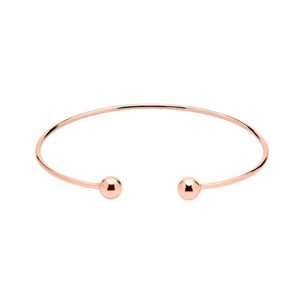 Denne armring er udført i rosaforgyldt sølv og har et åbent design med små kugler som gennemgående detalje. Udtrykket er enkelt og roligt, hvilket gør den velegnet til både hverdag og mere formelle sammenhænge.