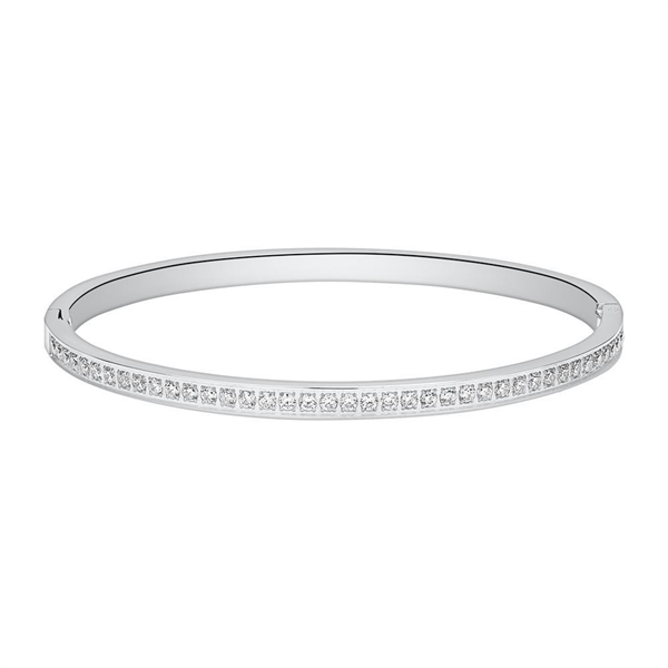 Denne armring er udført i stål og har en diskret zirkoniasten, der tilfører et roligt og elegant udtryk. Muligheden for gravering gør smykket personligt uden at ændre dets enkle stil.
