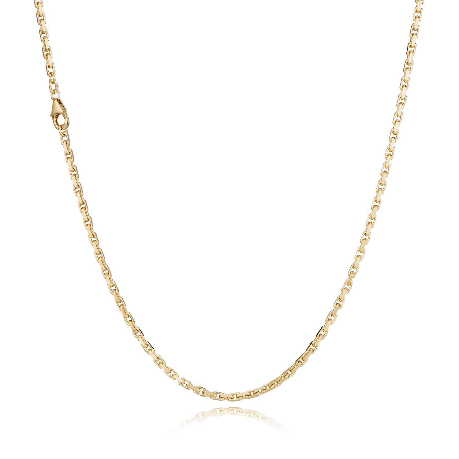Helt klassisk anker facet halskæde i guld. Halskæden er med den klassiske karabin lås. Halskæden med karabin lås kan købes fra en bredde på 1,8mm og op til en bredde på 3,4mm.