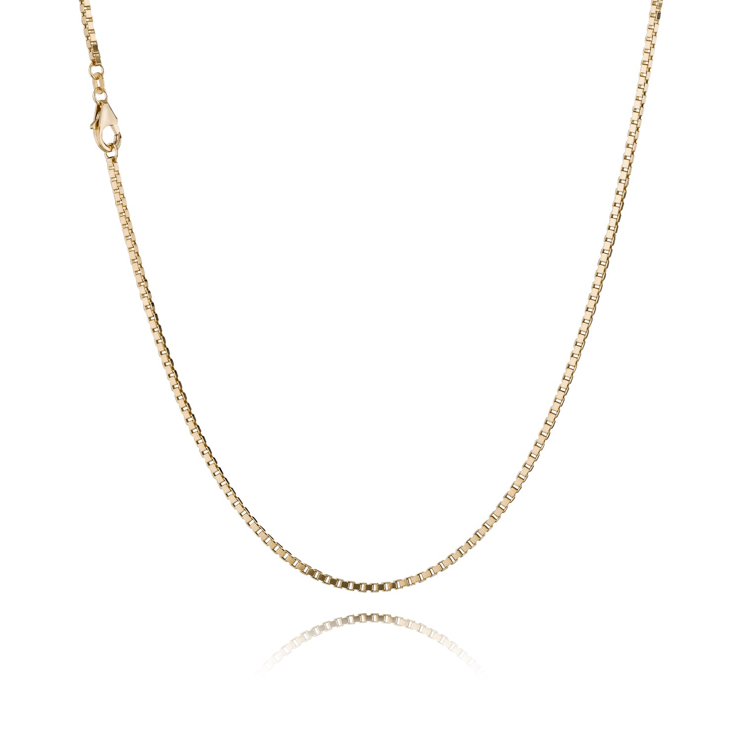Venezia halskæde. Halskæden er med karabin lås og er i 14 karat guld. Venezia halskæden er med karabin løs er 1.8mm i bredden.