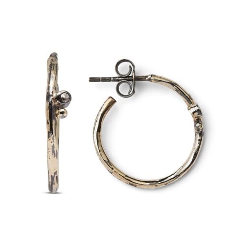 Sølv creoler med 14karats guld og en lille fin diamant. Øreringen er let oxiderede.
