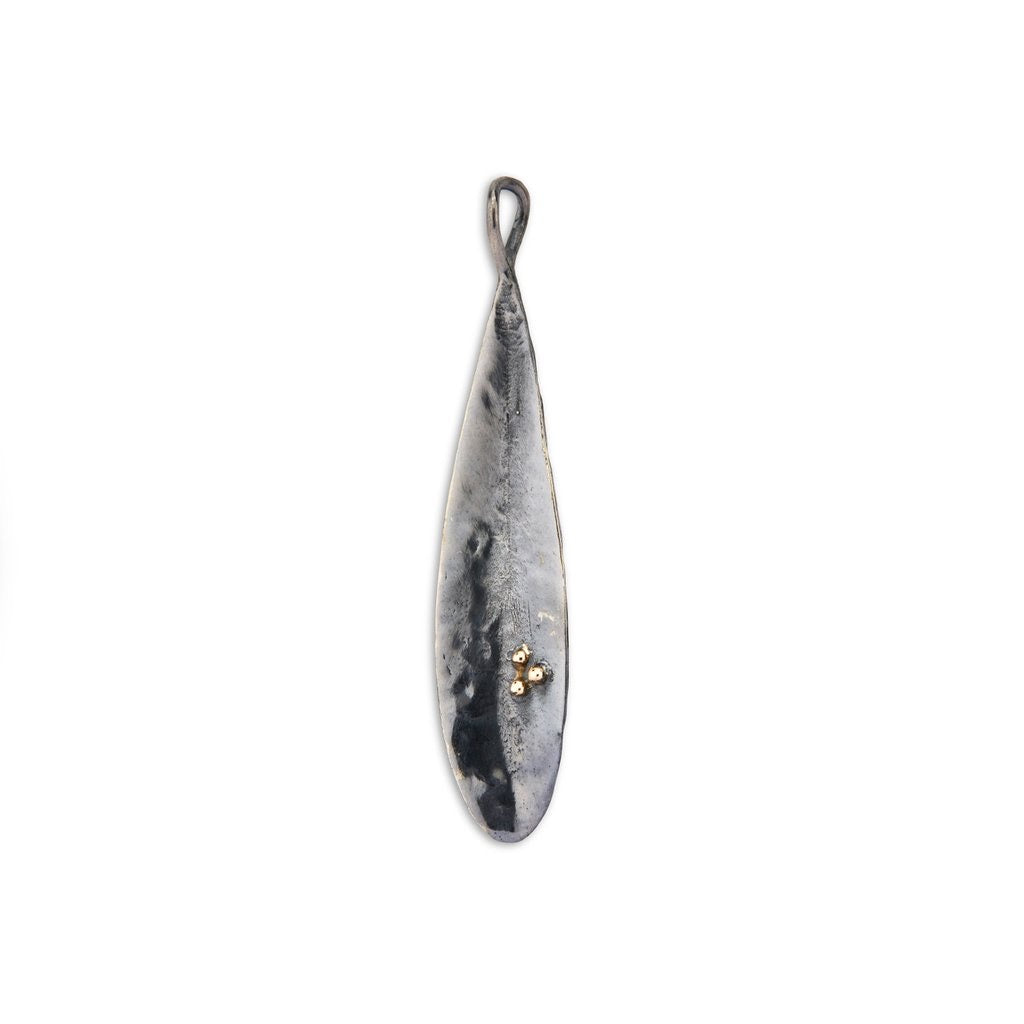 Sølv oxideret vedhæng fra by Birdie. Vedhænget er et olivenblad på 61mm, hvor der er på loddet 3 små fine kugler. Vedhænget er i en kæde også fra bybirdie på 70cm.