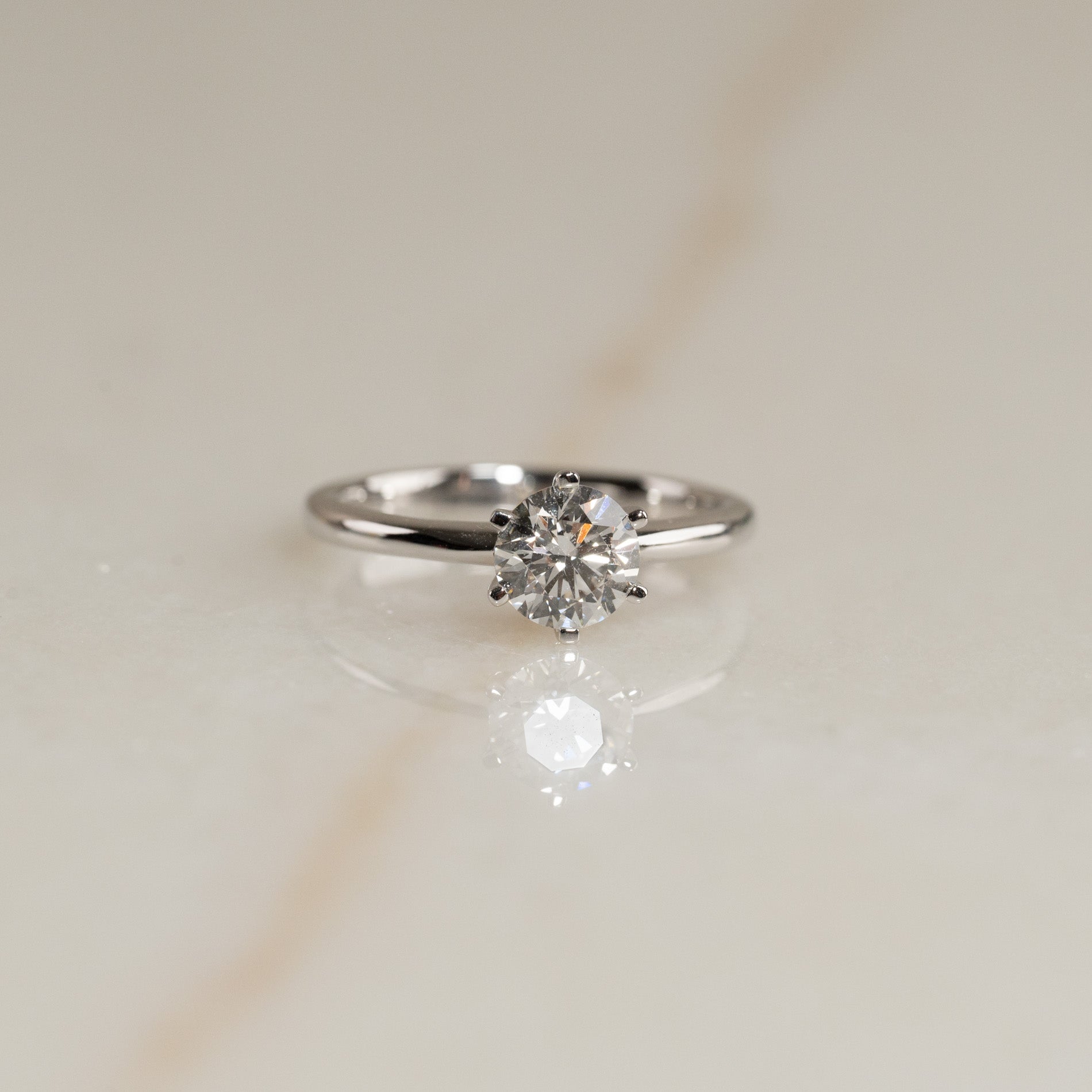 Diamantring i 14 karat hvidguld med en 1,0 ct. lab-grown brillantslebet diamant. Diamanten er fattet i en lav, klassisk fatning med seks grabber. Ringen er et klassisk og elegant smykke, som er velegnet til enhver lejlighed. Ringen er ligeledes velegnet som forlovelsesring. Ringen er udført i 14 karat massiv hvidguld med skabt lab-grown diamant, der har en vægt på 1 ct. Diamanten har farven E/F (River) og klarheden VVS. Smykket er skabt med omtanke; diamanterne er fremstillet med blandt andet solenergi, og guldet er 100% certificeret genanvendt. Ringen kommer i vores eksklusive Diamond Collection boks med en flot smykkeæske, certifikat og pouch. Boksen er også perfekt, hvis smykket skal gives som gave.
