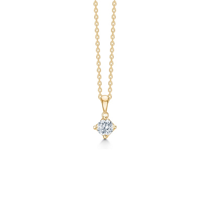 Dette elegante og feminine CROWN diamantvedhæng i 14 karat guld fra Mads Z er et tidløst smykke, hvor enkelhed og luksus går hånd i hånd. Vedhænget er designet med fokus på diamantens naturlige skønhed og er udført i 14 kt massivt guld med en klassisk indfatning i enkle og elegante grabber, som lader diamanten få maksimal lysindfaldog funklende glans.Vedhænget fås med brillantslebne diamanter i seks forskellige størrelser, fra 0,04 ct. til 0,50 ct., så du kan vælge netop den størrelse, der passer til din stil og dit ønske om udtryk. Uanset størrelse udstråler vedhænget eksklusivitet og raffineret elegance, som gør det velegnet til både hverdagsbrug og særlige anledninger.CROWN-serien fra Mads Z er kendt for sit unikke koncept som ombytningsserie. Det betyder, at du inden for 2 år har mulighed for at opgradere din diamant til en større størrelse. På den måde kan dit smykke vokse i takt med dine smykkedrømme og livets store øjeblikke – en smuk og fleksibel investering i både nutid og fremtid.Alle CROWN smykker leveres med officielt diamantcertifikat, som dokumenterer diamantens kvalitet og ægthed, og vedhænget leveres i en smuk og eksklusiv smykkeæske. Dette diamantvedhæng er en oplagt gaveidé til jubilæum, bryllup, morgengave eller som dit første diamantsmykke.Lad dine smykkedrømme begynde med et CROWN diamantvedhæng fra Mads Z – et klassisk, elegant og tidløst smykke, naturligvis hos Guldcenter.dk.