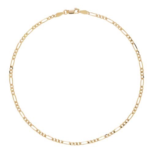Figaro Ankelkæde i 9 kt. GuldElegant og tidløs Figaro-ankelkæde i 9 karat Guld. Det klassiske Figaro-mønster består af en gentagen sekvens af led i forskellige længder, hvilket giver et raffineret og iøjnefaldende udtryk. Ankelkæden er 25 cm lang, 2,1 mm