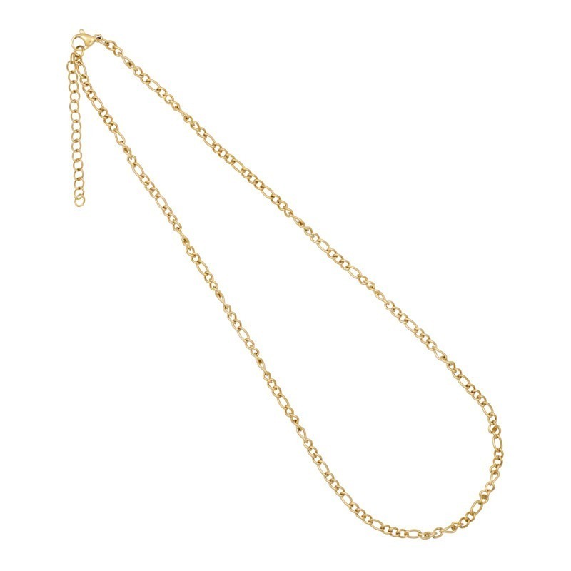 Halskæde i stål, belagt med 14 karat guld, i det klassiske figarodesign. Halskæden er 42 cm + 3 cm forlænger.