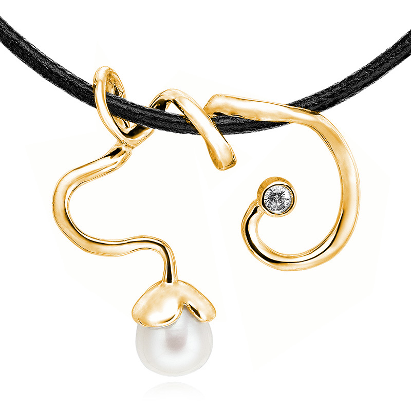En eventyrligt halssmykke i en skøn organisk form. Smykket er dekoreret med en hvid ferskvandskulturperle og en smuk zirkonia.