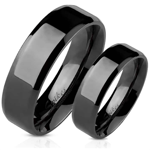 Flot blank sort rustfri stål IP belagt med holdbar behandling.Afrundede hjørner og enkelt lækkert design.Flere str. og bredder.Prisen er pr. stk og du skal lægge 2 stk i kurven ved køb som forlovelsesringe.Â
