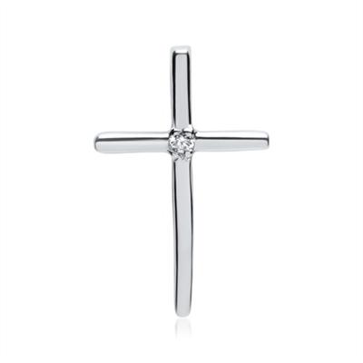 Kors i 14 kt. Hvidguld med Diamant 0,008 ct – 8 x 13 mm