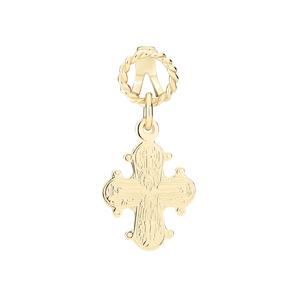 Smukt Dagmarkors i guldbelagt sterlingsølv fra Lund Copenhagen, perfekt til både børn og voksne. Korset måler 12 x 10 mm og har et dekorativt krans-design ved kædeøsknet, som tilføjer et elegant og iøjnefald
