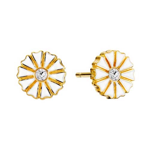 Marguerit ørestikker i forgyldt Sølv med Zirkonia fra Lund Copenhagen.Marguerit ørestikker i forgyldt Sølv med hvide margueritter.Margueritternes diameter er 7,5 mm og besat med Zirkoniasten.Overfladen er poleret og emaljeret.Alle margueritter fra Lund Co