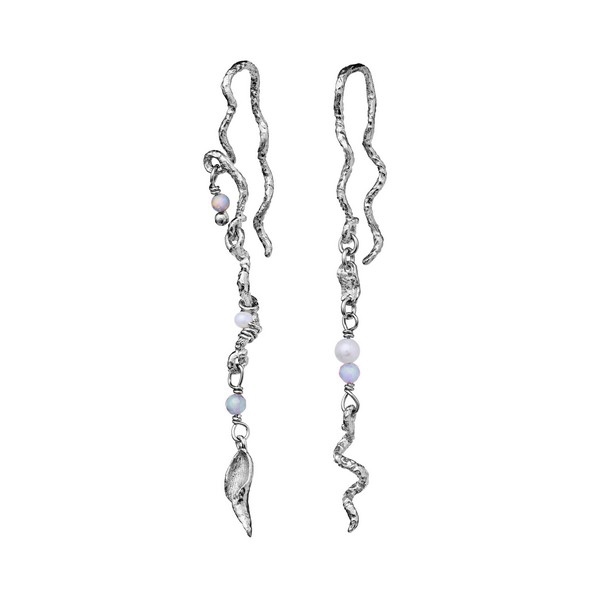 Elisaøreringe i sølv fra Maanesten er simpelthen fortryllende! Lange ørekroge prydet med smukke blå opaler, akvamariner og fine ferskvandsperler i et asymmetrisk look. Brug Elisa øreringene for sig selv eller kombiner dem evt. med andre fine Maanesten øreringe.Elisa findes også i 18kt. forgyldtsølv.Maanestens fine SS22 kollektion”Surrounding Shapes”er noget nær magisk. De allestedsnærværende, bølgende og organiske former, der omringer os, er inspirationen bag kollektionen, der er fuld af kreative energier. I kollektionen er der brugt 925 sterlingsølv, 18kt. forgyldt sterlingsølv og ægte natursten, perler og zirkoner til alle de håndlavede smykker.