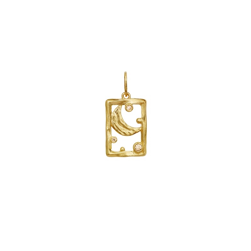 Spirit-vedhænget i forgyldt sølv fra Maanesten er skabt som en poetisk hyldest til intuition, indre styrke og den rolige klarhed, der opstår, når man giver sig selv tid til at lytte indad. Inspireret af nattens himmel og dens bløde, stjernefyldte mørke, bærer dette fine charm en symbolik, der inviterertil ro, fordybelse og fornemmelsen af at være forbundet til noget større. Vedhængets enkle, men dragende udtryk gør det til et smykke, der både kan bæres alene som et personligt statement eller kombineres med andre charms for at skabe et helt unikt udtryk.Den varme forgyldning tilfører et elegant skær, der smukt fanger lyset og understreger smykkets organiske detaljer. Spirit-vedhænget er designet til at være en lille, daglig påmindelse om at hæve blikket og stole på den retning, livet fører dig i. Det fungerer som et symbol på håb, drømme og den stille visdom, der guider os, når vi giver plads til refleksion.Uanset om du vælger at bære det som et betydningsfuldt smykke til hverdagen eller som en personlig talisman til særlige øjeblikke, er Spirit-vedhænget skabt til at følge dig gennem både store og små kapitler. Det er et smykke, der ikke blot pynter, mensom også bærer en fortælling om nærvær, inspiration og indre balance. Ved at vælge dette vedhæng får du et smykke, der kombinerer æstetik, symbolik og håndværk på en måde, som skaber varige, personlige forbindelser hverdag.