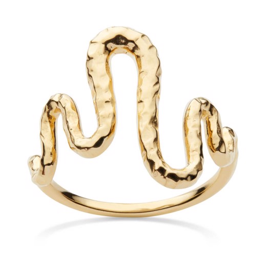 Viva ring i forgyldt sølv fra Maanesten med den kendte form.Den smukke Viva ring fra Maanesten er et kunstnerisk smykke i 18 kt. forgyldt sterlingsølv, der elegant bugter sig om fingeren med bløde, organiske linjer. Designet er inspireret af de naturlige mønstre i sandet på havets bund, et udtryk for Maanestens kærlighed til havets former og bevægelse.Viva ringen er ideel som statement ring på en af de større fingre, hvor dens unikke form virkelig kommer til sin ret. Den kan også kombineres med andre Maanesten ringe for et mere personligt og legende udtryk, præcis som Maanestens designunivers inviterer til.Smykket er skabt af Lotte Venø Callesen, grundlægger og designer bag Maanesten, som er kendt for at forene det moderne med det magiske. Hendes smykker trækker tråde til blomster, havet og naturens strukturer og former – og Viva ringen er ingen undtagelse.Maanestens kollektioner består af håndlavede ringe, armbånd, halskæder og øreringe i både sølv og forgyldt sølv, ofte prydet med farverige sten og perler, der gør hvert smykke levende og unikt.Viva ringen leveres i Maanestens ikoniske signaturæske – perfekt som gaveidé eller til selvforkælelse.Køb din Maanesten Viva ring i forgyldt sterlingsølv i dag, og bær et smykke, der forbinder naturens skønhed med moderne designæstetik.