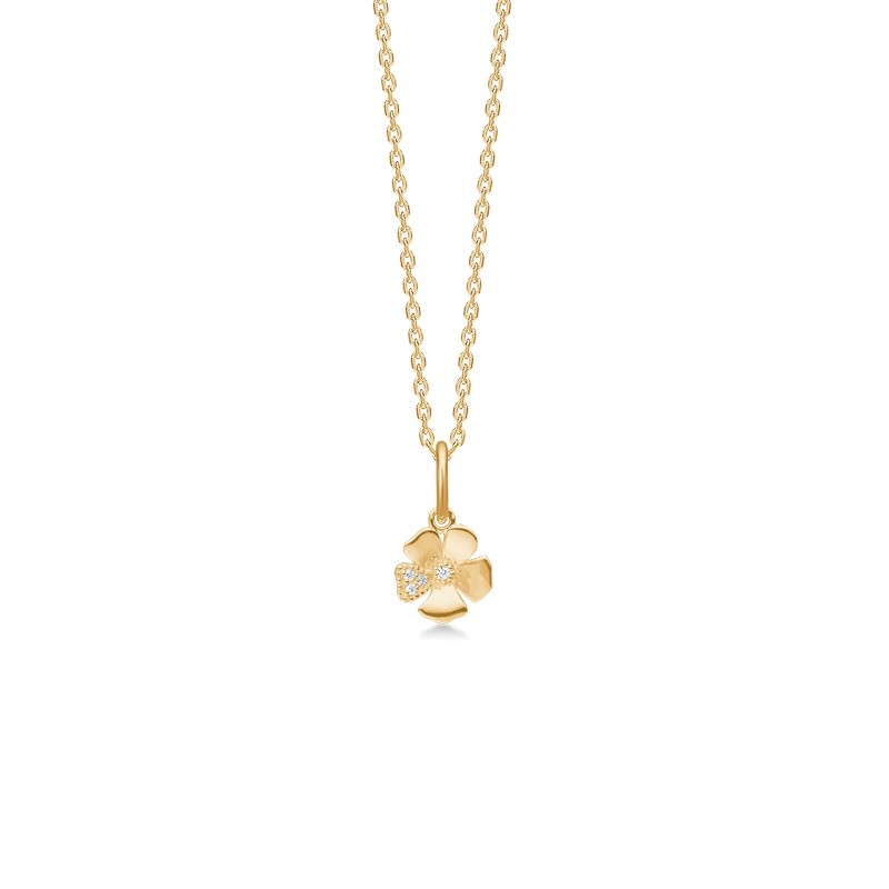 Fleur-halskæden i 14 karat guld fra Mads Z er et elegant og feminint smykke, der forener naturinspiration med eksklusivt håndværk. Det fine blomstervedhæng er smukt udsmykket med i alt 0,014 carat brillanter, som tilfører et diskret, men funklende udtryk. Blomsten måler ca. 7 mm og er designet i et enkelt og organisk formsprog, der gør halskæden både tidløs og let at bære i hverdagen såvel som til festlige anledninger.Halskæden leveres med en forgyldt anker rund kæde i sølv, som kan justeres i længderne 40, 42 og 45 cm. Det giver dig mulighed for at tilpasse kæden, så den passer perfekt til din stil og dit outfit. Det lette og elegante design gør Fleur-halskæden ideel både alene og i kombination med andre halskæder for et moderne lag-på-lag look.Fleur-blomsten findes i flere varianter – både med én eller flere brillanter – så du kan vælge det udtryk, der passer bedst til dig. Halskæden er en del af Gold Label fra Mads Z, en eksklusiv kollektion udført i 14 karat guld med ædelsten som diamanter, safirer og smaragder. Kollektionen rummer smykker i både klassiske og mere nutidige designs, skabt til kvinder, der ønsker kvalitet, elegance og personlig stil.Med den rette pleje er dette et smykke, der kan bæres og værdsættes hele livet.