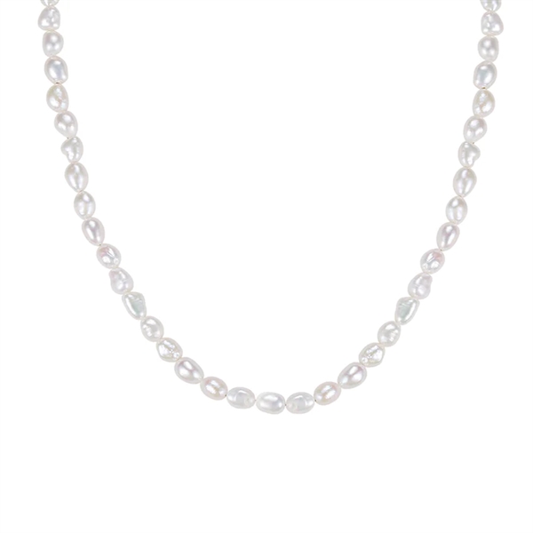 Smuk MerlePerle perlehalskæde med de fineste barokke perler. De hvide ferskvandsperler sidder smukt hele vejen rundt på halskæden – dog ikke på det lille forlængerstykke.Halskæderne fra MerlePerle er feminine smykker i et eksklusivt og nutidigt design. Med smykkerne fra MerlePerle får du smykker designet til at pifte hverdagen op og sætte gang i festen. Smykkerne er lavet i sterlingsølv og sterlingsølv forgyldt med 18 kt guld, hvilket giver dig smykker i en høj kvalitet og i priser de fleste kan være med på. De mange smukke sten er funklende zirkonia og andre farvede sten sammen med fine hvide ferskvandsperler. Husk at perler er et naturmateriale og der kan være mindre variationer fra billederSmykkerne fra MerlePerle leveres i egne smykkeæsker.