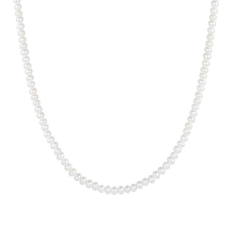 Maja perlehalskæden i forgyldt sølv med flade perler på hele kæden. Perlerne har et let ujævnt udtryk hvilket danner et fint spil mod halsen. Perlekæden fra MerlePerle måler 38+3 cm og de små perler måler mellem 4,5-5 mm.Perler er et natur materiale og ikke to perler er ens. Det betyder også at med debarokke perler vil der være små forskelle fra billedet du ser her og til de perler du modtager. Vores producent matcher dog perlerne op utrolig godt, så du får et smykke med samme udtryk som det af billedede.Smykkerne fra Merleperle er lavet i de fineste design med et enkelt og legende let udtryk. Med både perler, zirkonia og andre smykkesten får du smykker der passer både til hverdagen og når du skal noget helt specielt. Smykkerne er lavet i 18 karat forgyldt sølv og 925 sterlingsølv hvilket sikre dig kvalitet og holdbarhed.