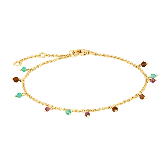 Smukt armbånd i forgyldt sterlingsølv med smukke farverige sten fra Nordahl Jewellery. Armbåndet måler 20cm i længden. Style armbåndet med et armbånd mere eller eventuelt et par matchende øreringe også fra den nye sommerkollektion 2022. Armbåndet kommer også i forgyldt sølv. Nordahl Andersen er et meget anerkendt og stærkt dansk brand, som både har smykker i sølv, forgyldt og rosaforgyldt. Med smykker fra Nordahl får du smykker i høj kvalitet og ekstraordinære design, der passer til mange anledninger. Nordahl Andersen har flere underbyggende brands som Joanli Nor, Nordahl Jewellery, Son of NOA, Siersbøl og H.C. Andersen.