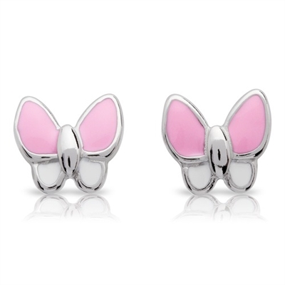 Ørestikker i Sterling Sølv med Sommerfugle.Ørestikker med sommerfugle hvor vingerne er i hvide og lyserøde.Overfladen er poleret og emljeret.