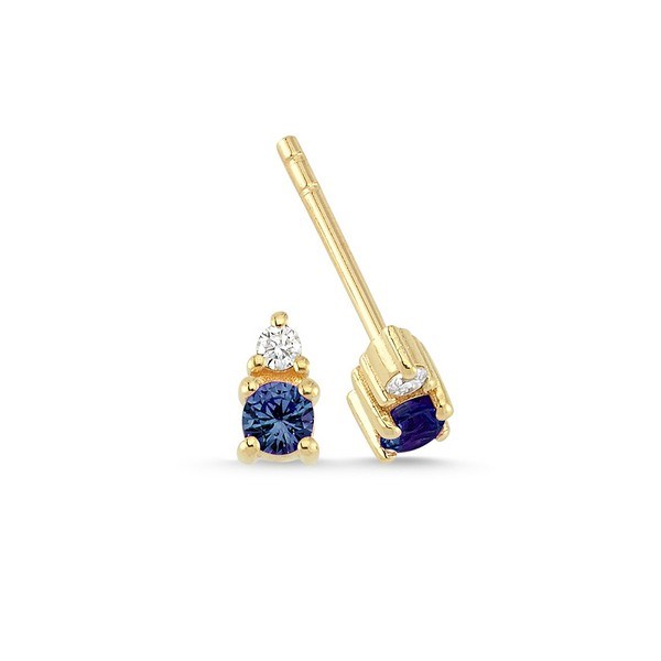 Petit – Blå safir øreringe i 14 kt. guld med brillant på i alt 0,05 ct.