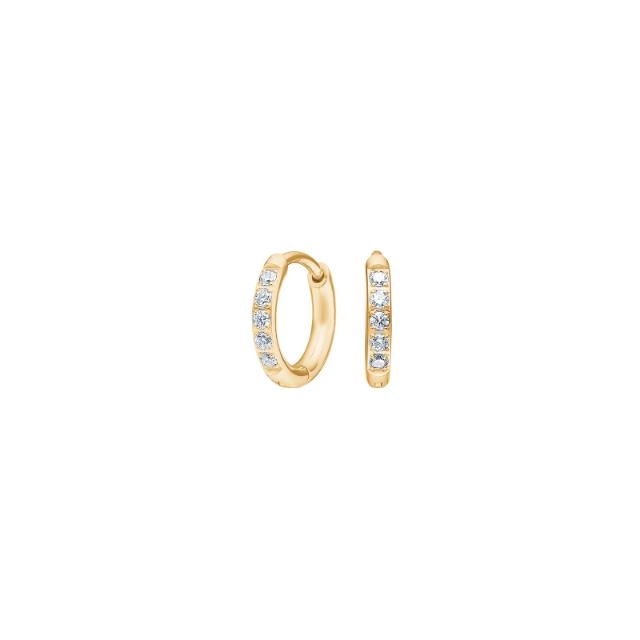 Små hoops i forgyldt titanium med hvide zirkonia – 100 % nikkelfri.Disse fine, små hoops fra Pure Titanium-kollektionen er fremstillet i nikkelfri titanium med en elegant forgyldt overflade og pyntet med smukke hvide zirkonia. Øreringene måler 8 mm i diameter og har et let og feminint udtryk,der passer perfekt til både børn og voksne med sensitiv hud.Det nikkelfri titanium er et oplagt valg, hvis du har allergi eller ønsker at undgå nikkel helt. Materialet er både slidstærkt og hudvenligt, og den forgyldte finish kombinerer det funktionelle med det æstetiske. Disse hoops er desuden særligt velegnede som det første par øreringe efter huller i ørerne, da de er skånsomme mod huden og nemme at bære hele dagen.Øreringene er designet af Nordahl Andersen, et anerkendt dansk smykkebrand med fokus på kvalitet og komfort. Pure Titanium-serien er udviklet med særligt henblik på at tilbyde smykker til dem, der ikke tåler almindelige metaller – uden at gå på kompromis med stil og design.Uanset om du vælger dem til dig selv eller som gave til én, du holder af, får du her et par enkle, elegante og allergivenlige hoops – et sikkert valg for dig, der ønskerbåde skønhed og tryghed i ét smykke.