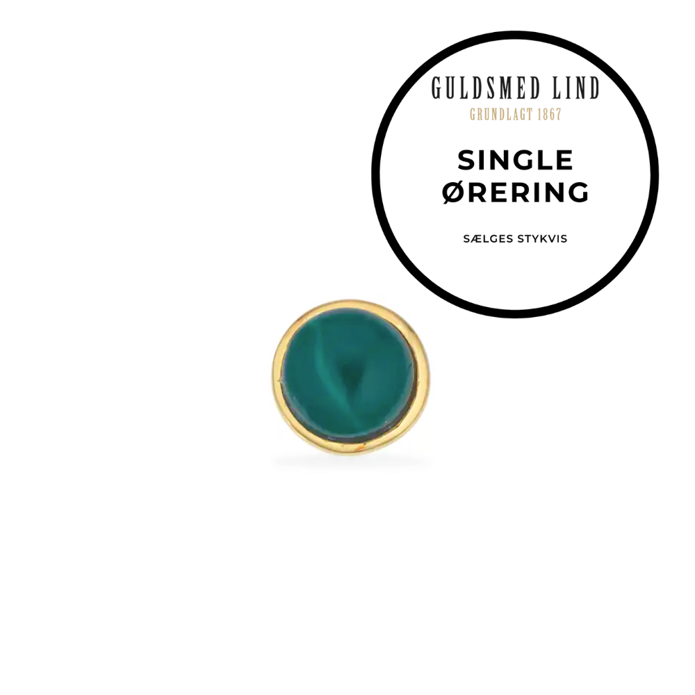 Guldbelagt sølv ørestik med grøn sten fra Scrouples. Den grønne sten sidder i en blankpoleret fatning.