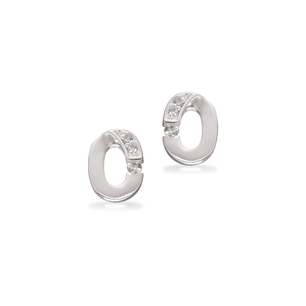 Matte sølv øreringe med små fine syntetiske zikonia. 925s zikonia sten 8mm