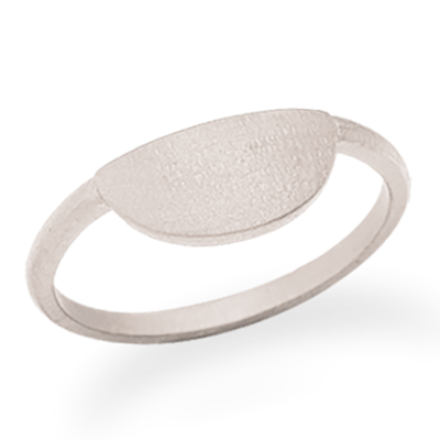 Fin sølvring der er matteret. På ringen er der en flad bue som giver et grafisk look.