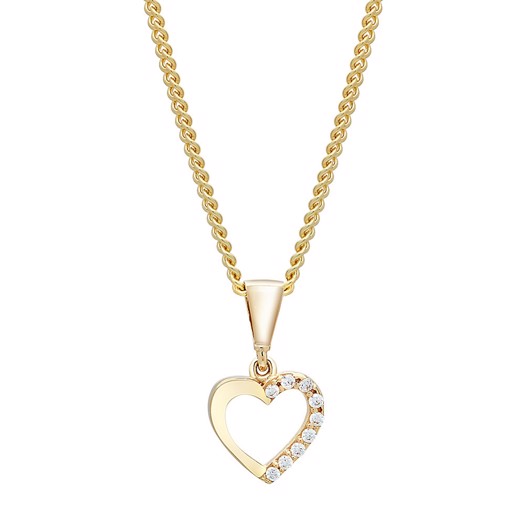 Klassisk hjertevedhæng i 8 karat guld med smukke hvide zirkonia, inkl. en forgyldt sølv kæde der måler 42 + 3 cm. En ægte klassiker, som passer til alt. Stenene er kubiske smukke zirkonia, som giver et smukt skær i solen. Til halskæden findes der matchende øreringe til.