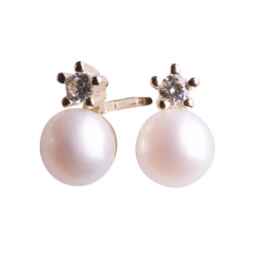 Elegante perleørestikker i 8 karat guld med zirkonia.Tilføj et strejf af klassisk skønhed til dit smykkeskrin med disse elegante perleørestikker, der kombinerer det tidløse udtryk fra perler med en glimtende detalje i form af en klar zirkonia. Ørestikkerne er udført i ægte 8 karat guld og udstråler både finesse og feminin elegance – perfekte til dig, der ønsker et stilfuldt smykke, som kan bæres både til hverdag og ved særlige lejligheder.Den store, glatte perle fanger lyset smukt og skaber en naturlig glød omkring ansigtet, mens den funklende zirkonia tilføjer et strejf af glamour. Det diskrete design gør dem nemme at kombinere med andre smykker, og de er særligt smukke sammen med en opsat frisure, hvor de virkelig får lov at træde frem.Ørestikkerne har en klassisk lås, som sikrer behagelig og sikker brug hele dagen.Ønsker du et fuldendt sæt, findes der en matchendehalskæde, som komplimenterer ørestikkernes stil og skaber en harmonisk helhed. Giv dig selv eller en, du holder af, en gave, der emmer af underspillet luksus og tidløs charme.