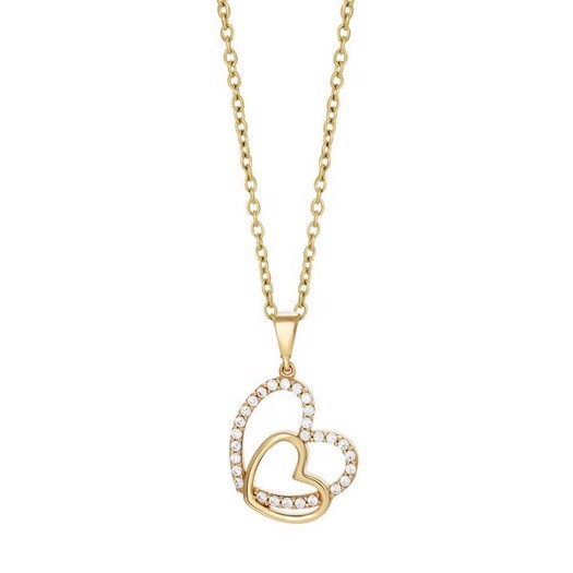 Siersbøl – 8kt. guld dobbelt hjertevedhæng med zirkonia.**