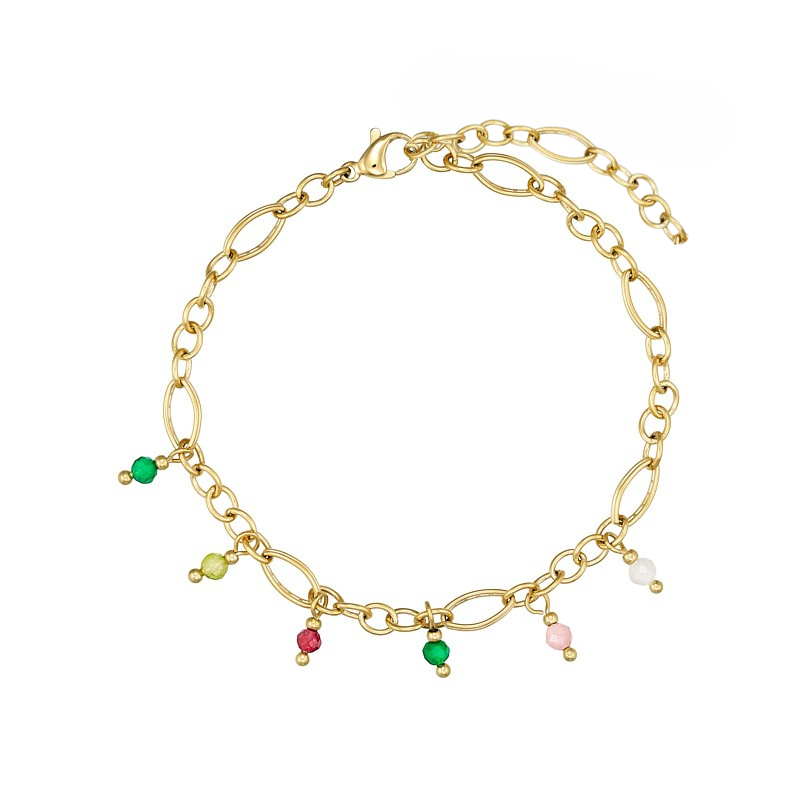 SNEAK PEAK – KAN LEVERES 4. JUNI. Smuk og feminin ankelkæde i stål belagt med 14 karat guld og fine ædelsten. Ankelkæden er 29 cm – fleksibel i størrelsen.