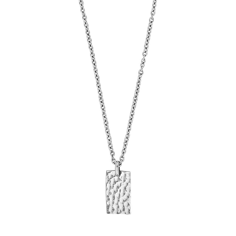 Halskæde til mænd med vedhæng i rustfrit stål fra Son of Noa. Den enkle kæde måler 55 + 5 cm i længden og vedhænget der er en rektangel med hamret overflade og måler 10 x 18 mm.Son of Noa fra Nordahl Andersen Jewellery er enkle og rå smykker til mænd i lækre materialer. Find både armbånd,halskæder, manchetknapper og fingerringe til mænd fra Son of Noa hos Guldcenter.dk.