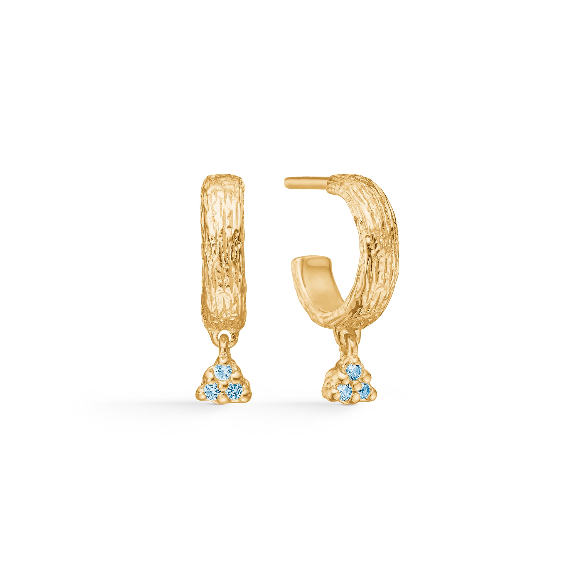 Oplev tidløs elegance med Cluster forgyldte sølv creoler med 3 små blå sten fra Studio Z. Disse øreringe er det perfekte accessories til enhver lejlighed, der tilføjer et strejf af subtil luksus til dit look.