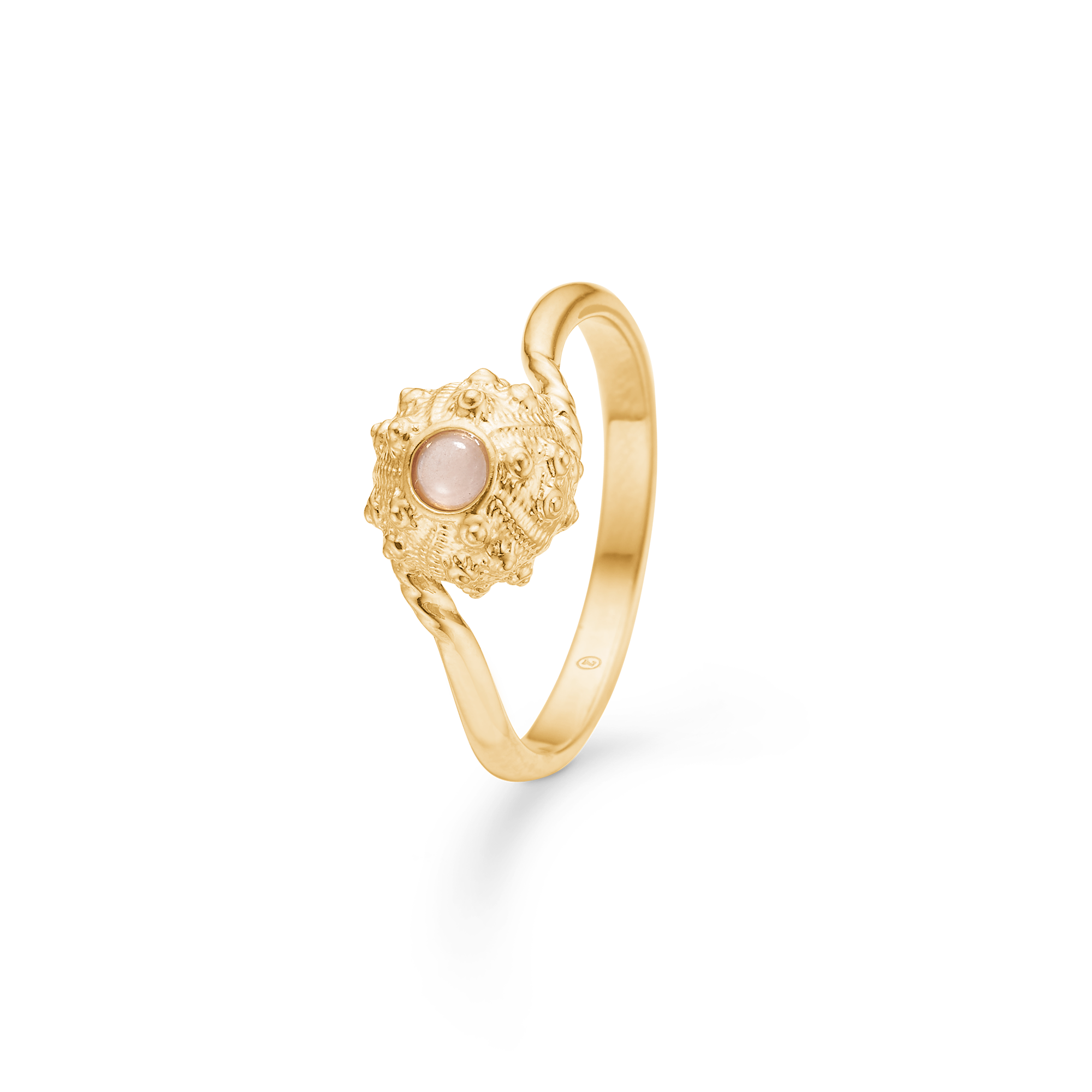 Lad naturens detaljer skinne med denne smukke Urchin Elegance ring fra Studio Z. Ringen er fremstillet i forgyldt sterling sølv og har en smuk rosa sten som centrum. Stenen er indfattet i en detalj