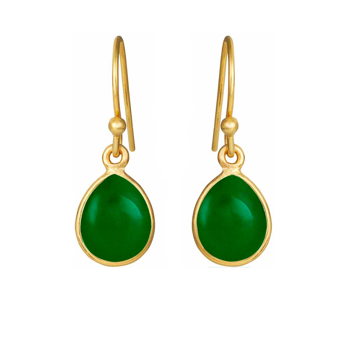 Forgyldt Sølv Ørebøjle med Grøn Agat fra Susanne Friis BjørnerTilføj et strejf af elegance med disse smukke ørebøjler i forgyldt sølv fra Susanne Friis Bjørner. Ørehængerne er udsmykket med en grøn agat i cabochon-slibning, der fremhæver stenens intense o