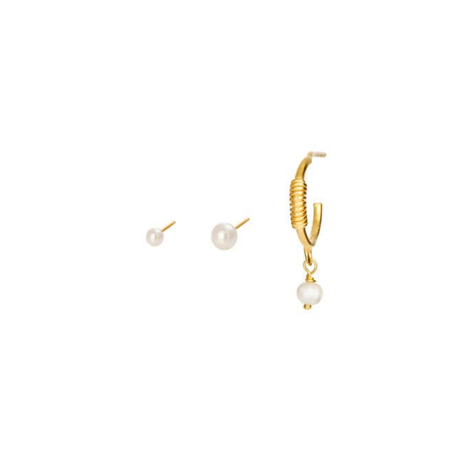 Dette smarte og alsidige sæt fra Susanne Friis Bjørner indeholder tre forgyldte sølvøreringe, designet til at blive mikset og matchet for et trendy look. Perfekt til dig, der elsker at eksperimentere med fo