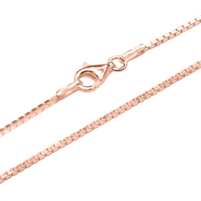 Venezia halskæde i rosaforgyldt Sølv – 1,2 mm fra 40 cmVenezia halskæde i rosaforgyldt Sølv med kvadratiske kædeled.Veneziakædens overflade er højglanspoleret.Veneziakæden forhandles i flere længder.
