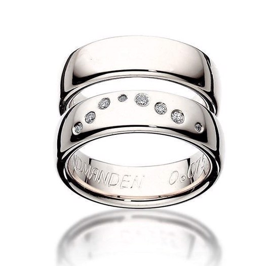 Ultra flotte vielsesringe i hvidguld og blank overflade fra Scrouples. Sættet er i 14kt. hvidguld og måler 6mm i bredden. Den smukke damering er super smuk med 8 brillanter i 0,075ct. i kvaliteten Wesselton/si, der danner vandmandens stjernebillede. Herreringen er maskulin, klassisk og moderne, men uden sten.Vandmandens stjernetegn går fra 20. januar til 18. februarVælg dameringen med en af jeres stjernebillede eller stjernebilledet for den måned i skal giftes i – kun fantasien sætter grænser!Scrouples er igennem 40 år blevet et traditionsrigt håndværk, der emmer af nordisk design, et bredt udvalg og et højt kvalitet. Scrouples Jewellery er et dansk brand og er en af de største smykkeproducenter i dag. Med et smykke fra Scrouples Jewellery får du elegance, enkle og gode kvalitets smykker.